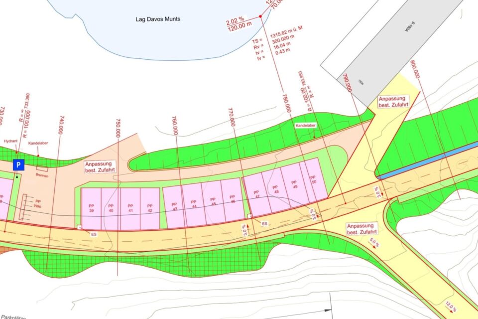 Erneuerung Güterstrasse Nr. 1 Surval-Davos Munts und Parkplätze Badesee